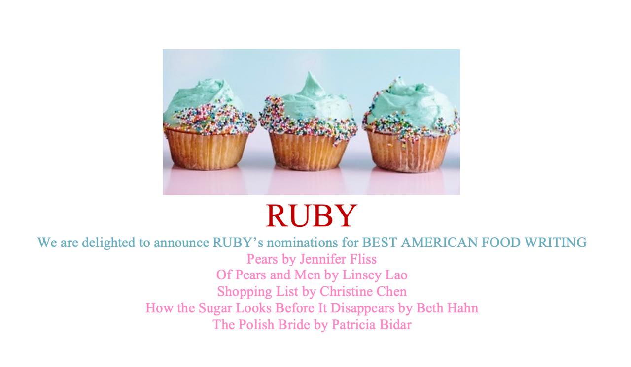 Shopping List in RUBY, (Nominated for the Pushcart Prize and Best American Food Writing) Dec 31