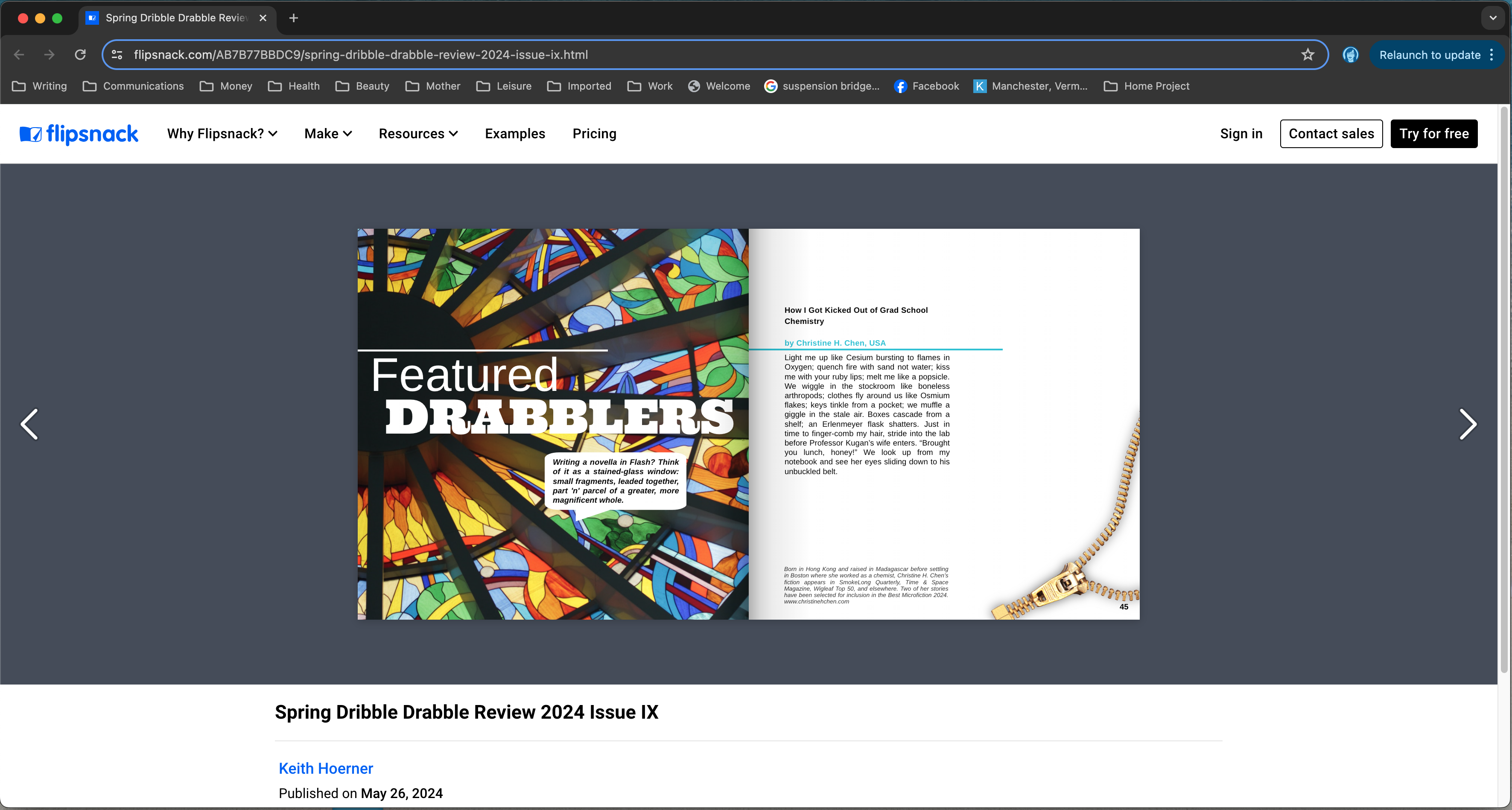 How I Got Kicked Out From Grad School Chemistry in The Dribble Drabble Review, Issue IX, May 27