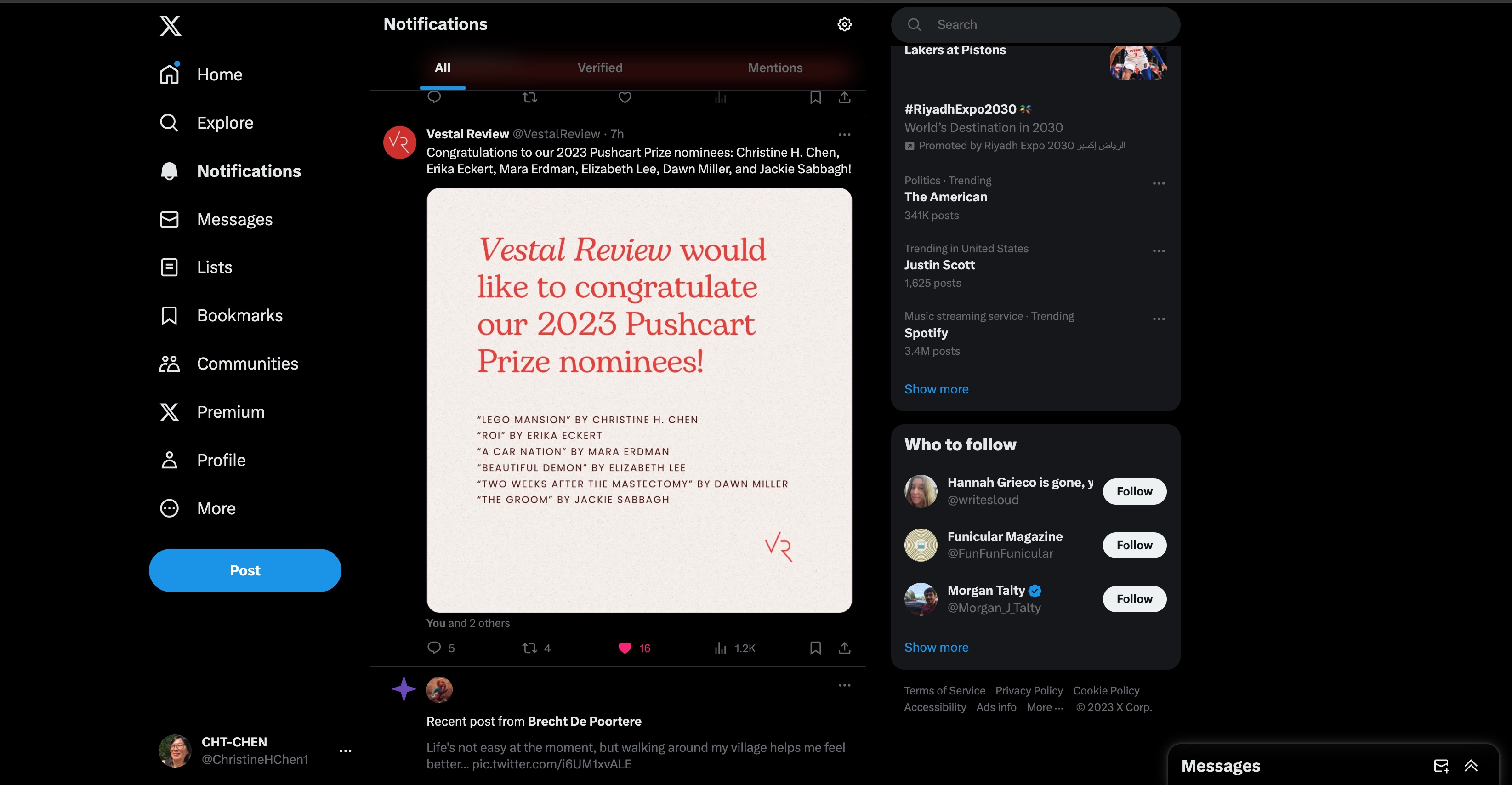 In the Blink of an Eye, selected for inclusion in Best Small Fictions 2024